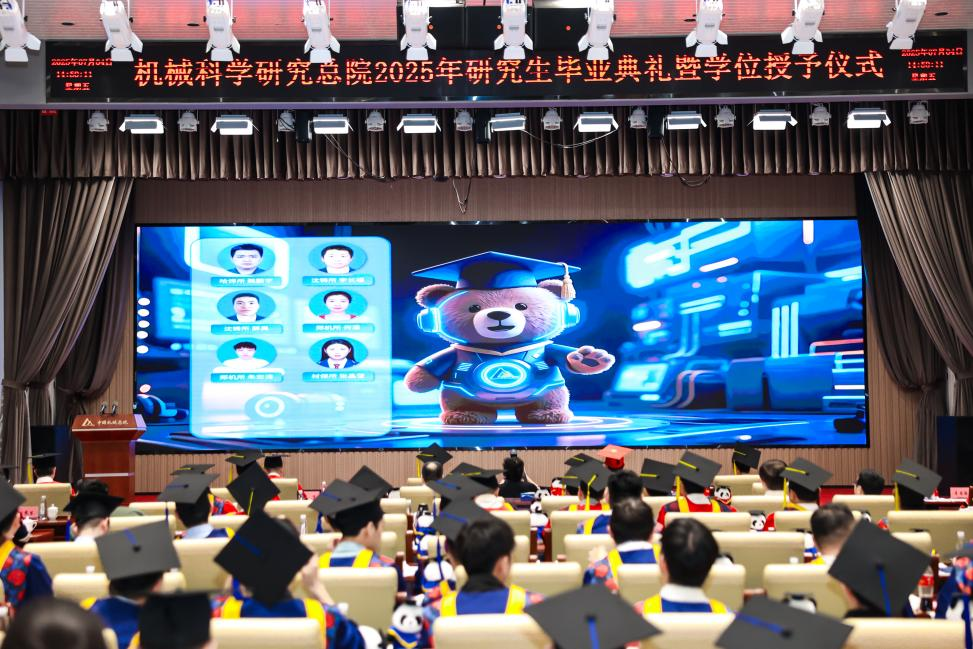 研究生院傾力打造的智慧課程虛擬AI助教“科小研同學(xué)”作為典禮第二主持人登上舞臺,現(xiàn)場宣讀了2025年北京市優(yōu)秀畢業(yè)研究生、機(jī)械總院優(yōu)秀畢業(yè)研究生、優(yōu)秀學(xué)位論文、科技創(chuàng)新成果獎獲得者名單,孟祥宇、李玉鑫、王宇、姜超分別向獲獎同學(xué)們頒發(fā)榮譽證書。
